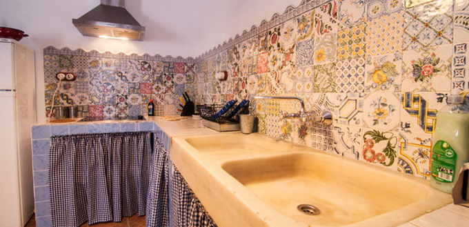 Para la casa se han recuperado algunas piezas antiguas como la pila de la cocina o la del baño de la primera planta. En el techo del salón se instaló un ventilador de aspas, que refresca durante el verano de una manera más natural. Los interruptores de la luz de la planta baja son como los de antes y las baldosas de la cocina forman un mosaico de colores y formas que da un toque particular al espacio.